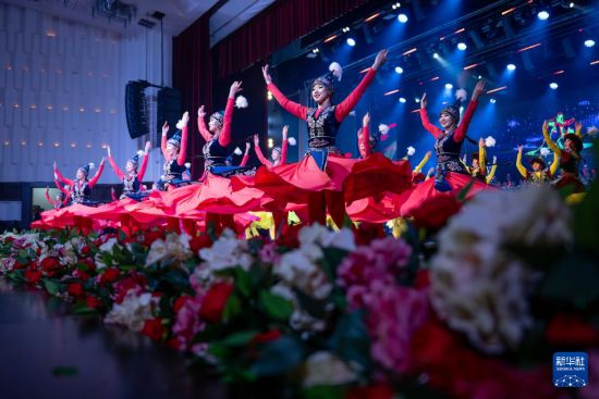 3月24日,在吉尔吉斯斯坦首都比什凯克,演员在开幕式上表演舞蹈。新华社记者 李任滋 摄