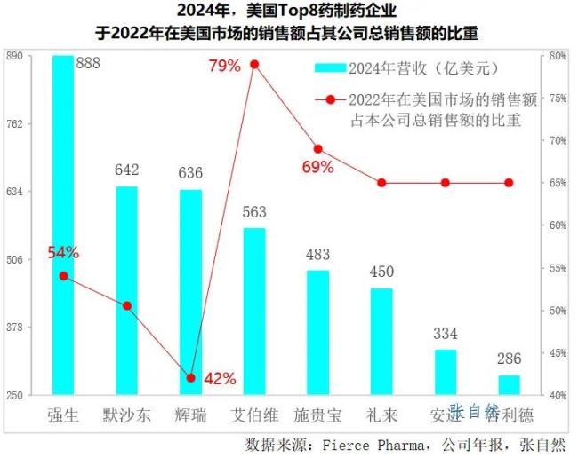 2024年,美国有8家制药企业跻身全球制药企业Top20。