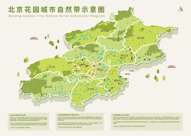 林晋文展示了一张《北京花园城市自然带示意图》,这张地图标注了已建成的558处自然带坐标,初步反映了全市自然带分布情况,直观展示了市民生活区域周边的生物多样性热点区域,并对自然带的概念和类型进行了基本科普。
