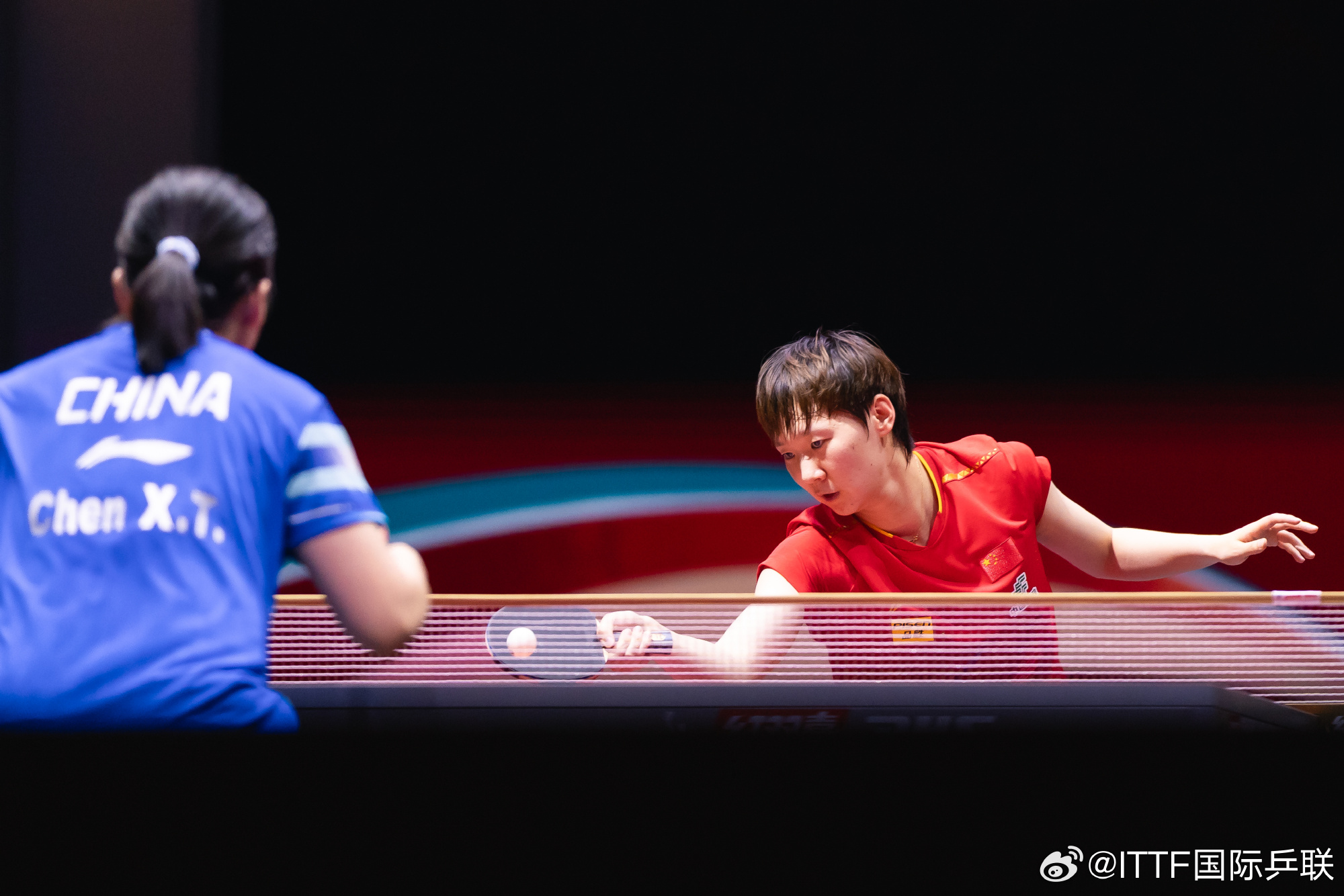 半决赛,孙颖莎与老对手伊藤美诚相遇。整场比赛,孙颖莎牢牢掌握正手进攻的主动权,最终以4:0零封对手,入围决赛。赛后孙颖莎说:“能和队友顺利会师是非常好的结局。不论结果如何,我都会全力以赴珍惜比赛中的每一分。”