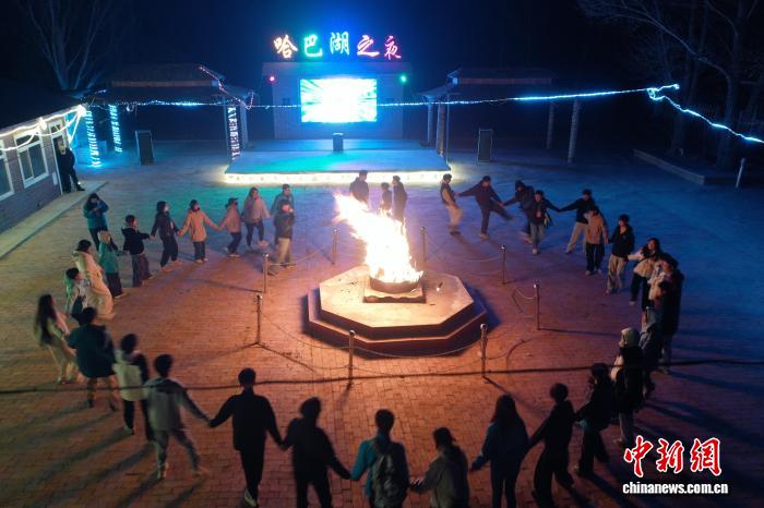 3月29日,香港青年在宁夏盐池县哈巴湖观星基地体验篝火晚会。(宁港青年交流促进会供图)
