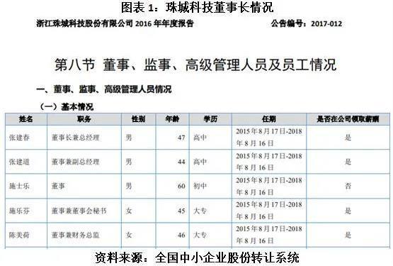 珠城科技在新三板挂牌时,张建春学历为高中。施乐芬为大专生。然而,两人都在追求学历上的进步,在随后的工作中,均获得了中国人民大学MBA课程结业,张建春还成为了高级经济师。
