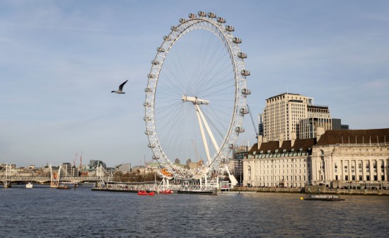 2024年1月28日,一只飞鸟飞过英国伦敦的伦敦眼。新华社记者 李颖 摄