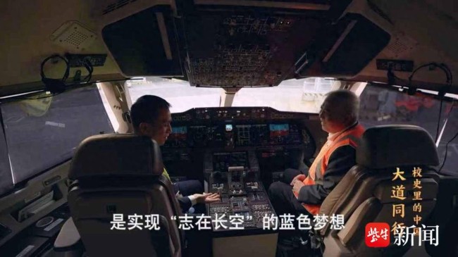 两代南航人见证中国大飞机起航 蓝天梦想成真!5月13日,央视《大道同行——校史里的中国》栏目播出了一次特殊的会面。中国工程院院士、C919总设计师吴光辉和东航机长刘昕在C919机舱内完成了一次历史性的相逢。他们都是国产大飞机翱翔蓝天的亲历者和见证人,与众多奋战在各个领域的南航校友一道,在高空完成了“志在长空牧群星”的精神接力。