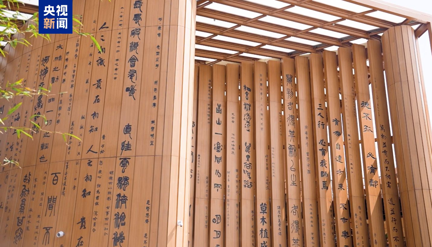 中国馆外观设计灵感源自中国古代书简,形似徐徐展开的竹简长卷,象征中华文明的传承与开放。建筑外立面镌刻119句诗词名篇,采用金、篆、隶、行、楷五种字体,展现汉字的文化魅力。建筑形态象征“文明传承”,通过空间递进,营造东方园林的含蓄美学。