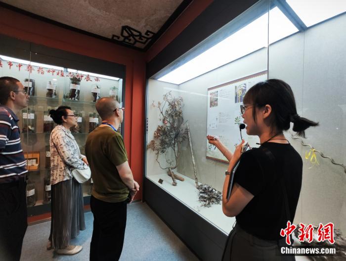 中国彝医药博览馆内,讲解员向访客讲解植物标本。刘越 摄