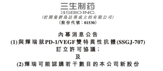 PD-1/VEGF双抗潜力再验证,三生制药火力全开
