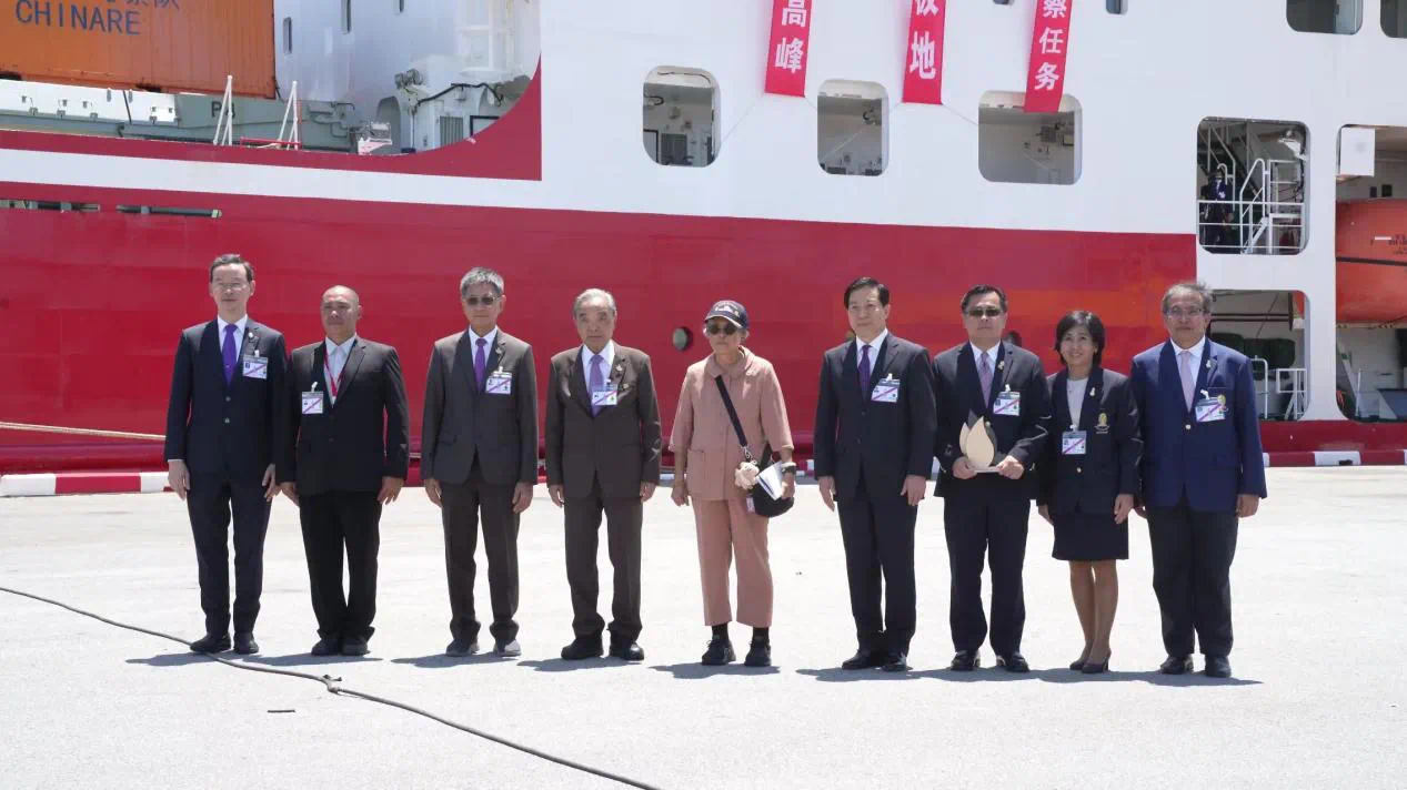 诗琳通公主饶有兴致地登船参观了“雪龙2”号驾驶舱和船内实验室、住舱、诊疗室等配套设施,积极评价中国在极地科考方面取得的显著成就,以及“泰中诗琳通公主南极联合实验室”运行12年来两国科研合作成果,感谢中方安排泰国科学家参与中国极地考察,希望双方以两国庆祝建交50周年为契机,进一步深化科技、人才培养等领域交流合作。