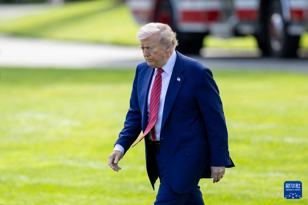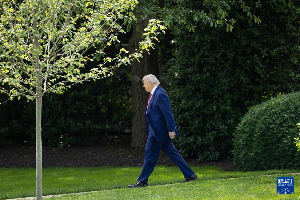 5月23日,在华盛顿白宫,美国总统特朗普走向南草坪准备登机。新华社记者 胡友松 摄