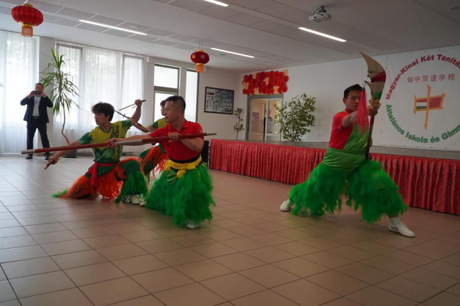 人民网华沙5月24日电 (记者禹丽敏)5月22日上午,“海丝文化进校园”活动在匈中双语学校举办。中国驻匈牙利使馆参赞孙杰、泉州市体育局党组书记郑宏谋、福建省泉州体育运动学校校长庄开明、泉州市艺术馆(泉州市非遗保护中心)馆长丁聪辉、学校校长茹娆、中方院长王悦及师生近700余人参加活动。来自中国泉州的文化体育代表团为当地师生带来了一场别开生面的文化展示活动,让这座欧洲校园洋溢着浓厚的海丝文化气息。