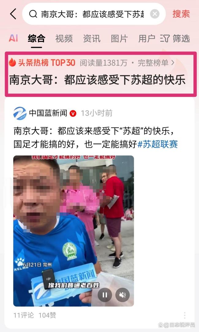 此呼吁经网络传播后,迅速引发热议。网友纷纷表示,“苏超”确实带来不一样的快乐,让大家看到足球最纯粹的一面,也有人感慨,这种全民参与、享受快乐的足球氛围正是中国足球发展所需要的。有网友评论:“‘苏超’把快乐足球展现得淋漓尽致,让普通人成为主角,大家不仅是观众,还能通过玩梗、呐喊参与其中,这样的氛围才能真正激发大众对足球的热爱,希望国足也能在这种快乐中找到发展方向。”还有网友说:“南京大哥说出大家的心声,希望未来能有更多这样接地气、充满欢乐的足球赛事。”
