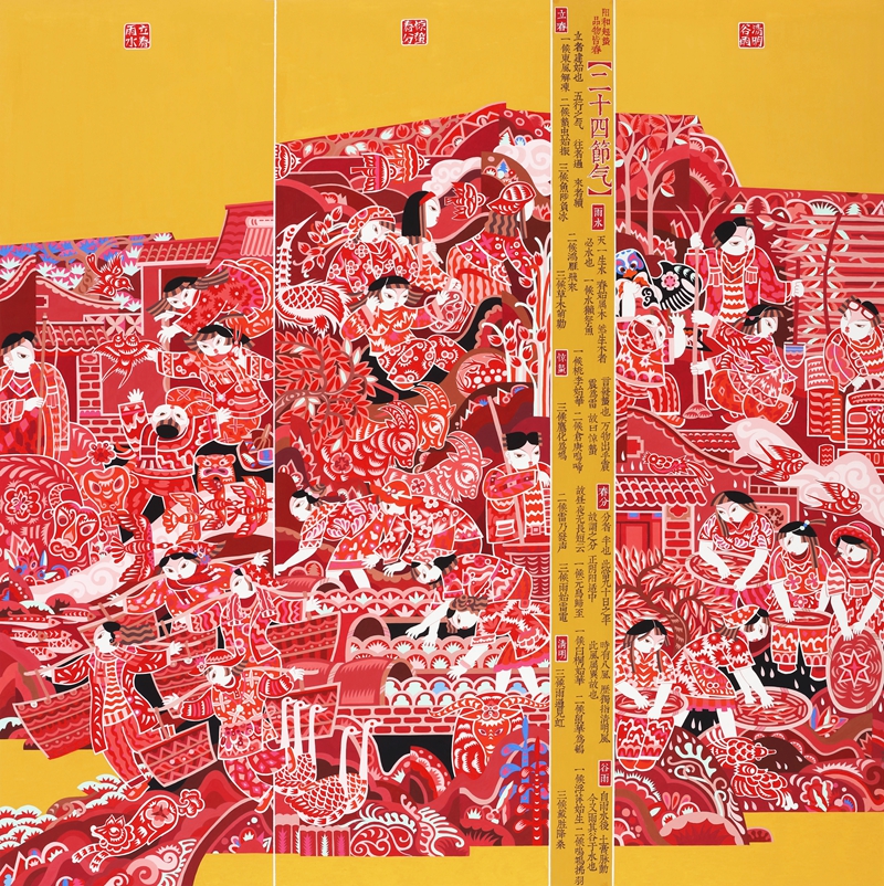 现场还展出了《二十四节气:黄河流域农民画数字艺术展》代表作品,作为国家艺术基金支持项目,该展览以数字化技术融合传统农民画艺术,深度挖掘黄河文化与节气智慧,生动展现二十四节气下的民风民俗、生产生活与四季劳作场景,为传承中华优秀传统文化提供了创新范式。
