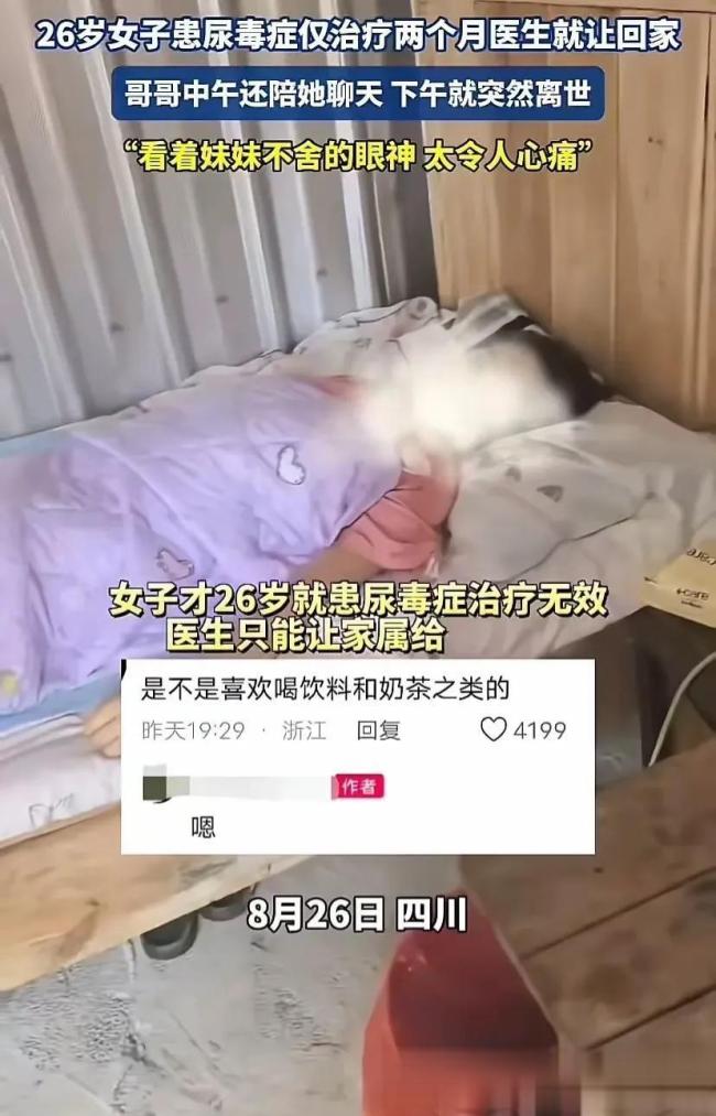 据报道,这名女孩上午还在与哥哥聊天,下午却突然病情恶化,年轻的生命就这样戛然而止。视频中她躺在病床上的样子令人痛心,眼神中流露出的不舍让人感到遗憾。如果时间可以倒流,她可能再也不愿喝那么多饮料或奶茶了。