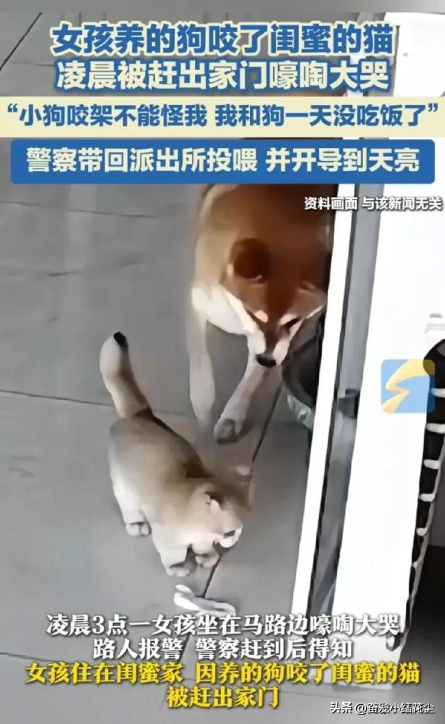 因猫狗大战闺蜜翻脸 女孩被赶出家门 宠物引发的“血案”!凌晨三点,安徽蚌埠一名女孩因宠物狗咬伤闺蜜家的猫咪,被赶出家门,蜷缩街头哭泣。这起“狗猫大战”引发的闺蜜决裂背后,反映了寄人篱下的生存困境。