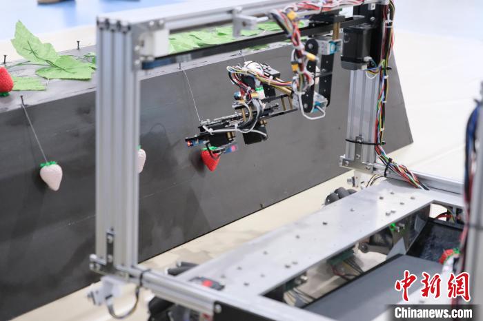 中新网杭州5月15日电(曹丹)在浙江大学(下称“浙大”)机器人与智能装备学生创新实践基地,一台四轮驱动的小车正在模拟草莓采摘作业。这台由浙大农业工程专业学生盛泽楠团队自主设计的“草莓采摘机器人”,从构思到成品仅用了一个半月,并荣获了2023年中国农业机器人大赛一等奖。