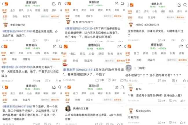 社媒平台围绕康惠制药是否存在内幕交易的质疑声音很多