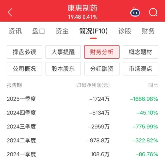 71家中药类上市企业里,康惠制药2024年以“净利润为-8,962.55万元,亏损规模同比扩大242.63%”位列尾部,至2025年一季度,多项指标已经倒数第一。