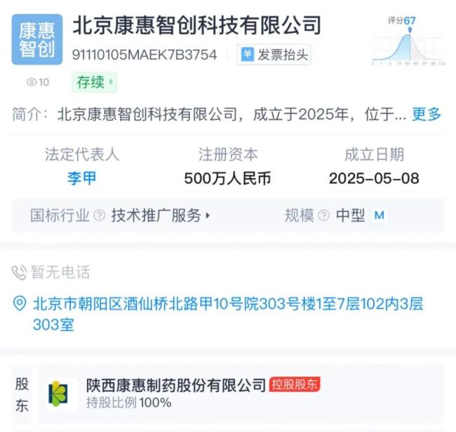 从子公司名称开始,虽然“康惠”品牌延续表面连贯,实则转身已经启动,接下来的细节还有:公司设立于北京科技企业聚集区——朝阳区酒仙桥北路,彻底脱离陕西的传统中药业务环境,地理位置上悄然转型;