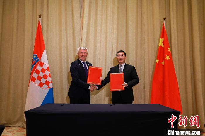 5月22日,第七届中国—中东欧国家海关检验检疫合作对话会在浙江宁波举行。其间,中国分别与克罗地亚、保加利亚签署农食产品准入议定书。截至目前,中东欧14国已有126种农食产品准入,累计注册3430家境外农产品企业。图为中克(罗地亚)签署农食产品准入议定书。干晓意 摄