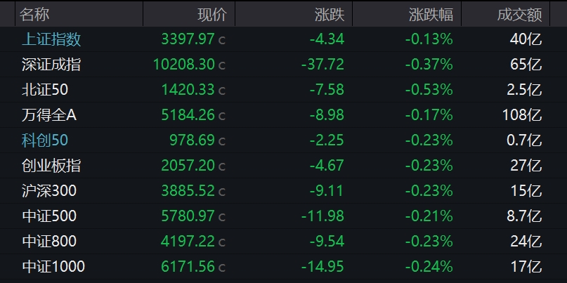 中新经纬6月12日电 12日,A股三大指数集体低开,上证指数跌0.13%,报3397.97点;深证成指跌0.37%,报10208.30点;创业板指跌0.23%,报2057.20点。