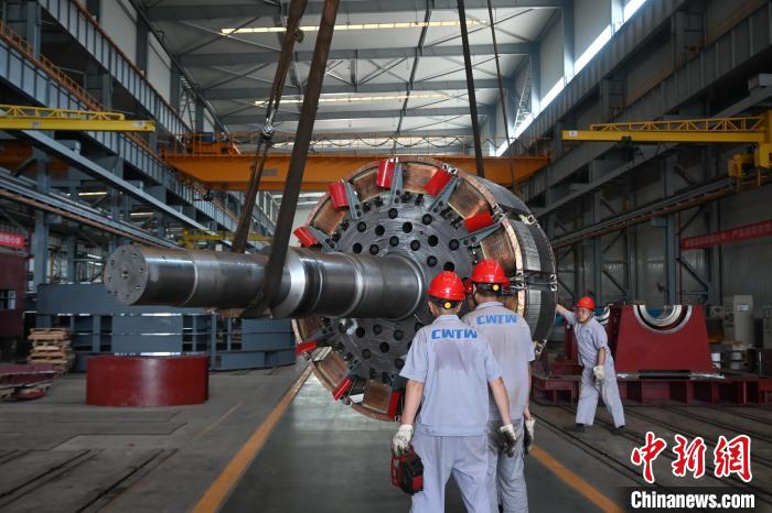 中新社记者近日到位于重庆江津的重水公司生产基地采访时看到,工作人员正在对水轮发电机组进行组装,准备发往海外。据介绍,2025年以来,重水公司已收到国内外订单超3亿元人民币,其中七成订单来自海外市场,涉尼泊尔、越南、哈萨克斯坦等国家。