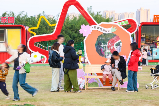 图组为:市民和游客在武汉龟山公园、无锡鼋头渚、西安雁南公园的滴滴赏花打卡点游玩