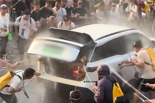 在热闹的云南泼水节现场,街道上满是相互泼水送祝福的人群。一辆来自东北的广汽丰田铂智3X缓缓驶过时,突然出现了不和谐的一幕。多名围观群众围了上来,一边向车辆泼水,一边反复拉扯车门,还有人趁机打开了车辆尾门,对着车内不断灌水。
