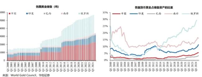 美元在全球外汇储备中占比下降,而黄金占比上升的现象说明黄金作为货币价值锚定物的价值越来越凸显,无论是个人、机构抑或国家,都在认为黄金的价值越来越高。
