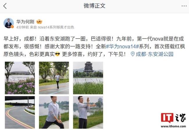 华为nova 14系列及鸿蒙电脑新品发布会定于5月19日举行,新机的外观和配色已经公布。华为终端BG首席执行官何刚分享了nova 14 Ultra手机的拍摄样张,并宣布这款手机首次搭载红枫原色镜头,色彩更真实。