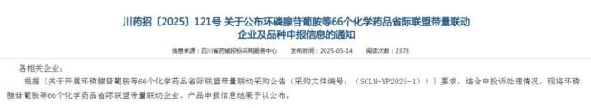 根据四川省药械招标采购服务中心发布的《关于公布环磷腺苷葡胺等66个化学药品省际联盟带量联动企业及品种申报信息的通知》,本次采购活动吸引了413家企业提交申报。然而,经过筛选,最终仅有241家企业拟中选,这一结果反映出本次采购竞争白热化。