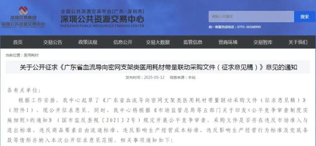 当前,带量联动已在全国各地常态化开展。除了此番即将收官的四川联盟,深圳公共资源交易中心5月12日发布《关于公开征求〈广东省血流导向密网支架类医用耗材带量联动采购文件(征求意见稿)〉意见的通知》,即将开启血流导向密网支架类医用耗材带量联动采购。本次采购周期为2年,不进行产品分类,最高有效申报价(P0)为69800元/根。