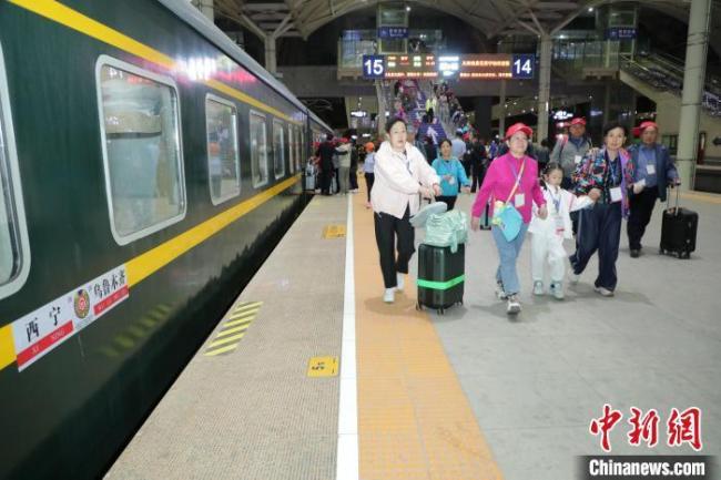 中国铁路青藏集团有限公司近日开行了今年首趟前往新疆方向的旅游专列——Y359次畅游新疆旅游列车,该列车于昨晚23时07分从西宁站出发。乘坐此次专列的710余名旅客来自陕西、甘肃、宁夏、青海等地,在为期15天的旅途中,他们将沿着古丝绸之路,领略新疆壮美的自然风光和独特的民族人文风情。