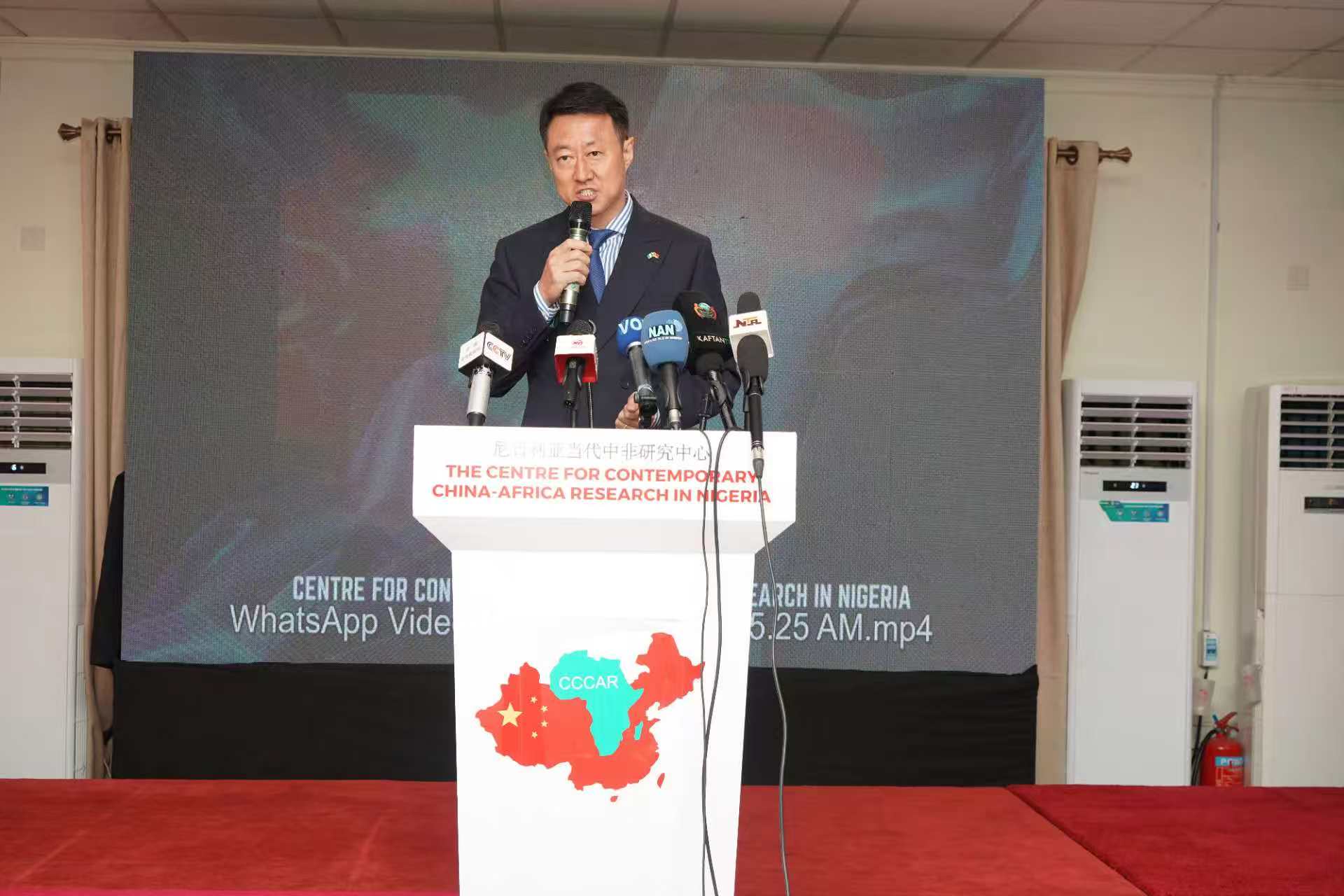 中国驻尼日利亚大使于敦海致辞。 陈慧玲摄