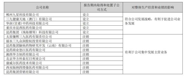年报显示,2024年华润三九注销了包括昆药集团营销有限公司、北京华方科泰尼日利亚公司在内的9家公司,其给出的理由是有利于集中发展主营业务。
