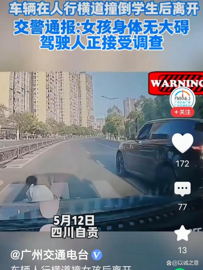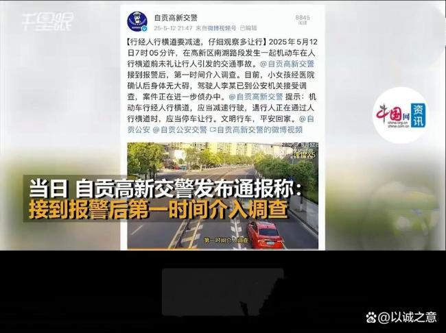 雨天斑马线上孩子冲出被车撞倒碾压肇事司机逃逸引发公愤。2025年5月12日,在四川省自贡市高新区南湖路上的一条人行斑马线上,发生了一起令人惊心动魄的交通事故。早晨7时多一点,一名十来岁的小女孩穿着校服背着书包正欲穿过这条人行横道去学校上课。当时,小女孩很小心地观察着路况,靠里侧道的一辆车发现她要过斑马线,便立即停车并鸣笛,让小女孩安全过街。小女孩也加速过街,但突然旁边一车道上,一辆黑色SUV冲了出来。小女孩惊叫一声后本能地向后撤步,一个踉跄倒在了斑马线上。