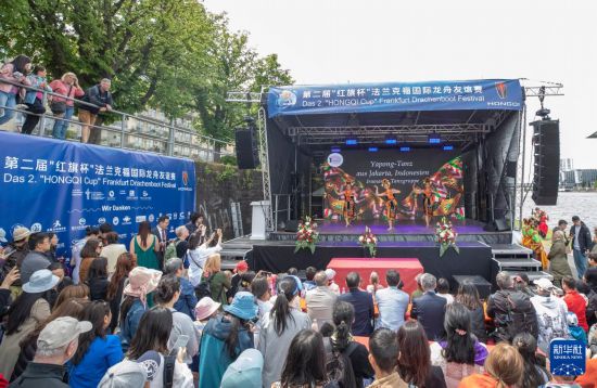 5月24日,观众在第二届德国法兰克福国际龙舟友谊赛期间欣赏印度尼西亚传统舞蹈。新华社记者 张帆 摄