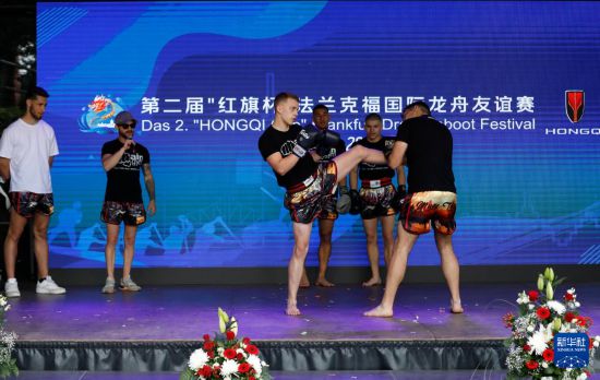 5月24日,人们在第二届德国法兰克福国际龙舟友谊赛期间表演泰拳。新华社记者 张帆 摄