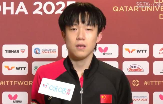 5月25日,世乒赛男单决赛中,中国选手王楚钦以4-1战胜雨果,赢得了他首个三大赛冠军。赛后,王楚钦接受了采访。