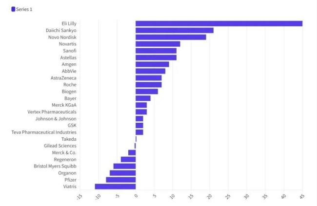 礼来,更是以45%的增幅,一骑绝尘。