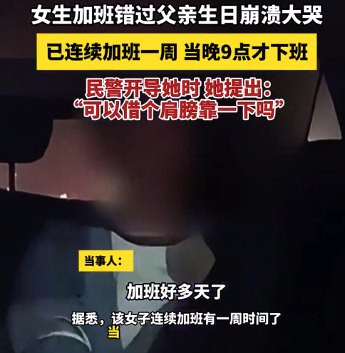 “连续加班有一周时间了,当天晚上9点才下班回家,突然发现自己错过了父亲的生日,多重压力下导致情绪崩溃。”6月19日,黄浩接受记者采访时介绍,6月13日晚上9时许,他和同事一起巡逻到尹家湖大桥段时,远远看到一名穿着蓝色工作服的女孩倚在大桥的护栏旁边号啕大哭。担心女子会想不开,黄浩立即停车跑上前去,询问对方是不是遇到了困难。