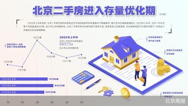 7月1日,北京商报记者根据北京市住建委数据统计发现,2025年1—6月,北京市二手住宅累计网签88575套,逼近9万套,创三年以来同期新高。二手房全口径网签量突破9万套。分析指出,年内,北京二手房走过了从政策驱动到自主调节的周期。在挂牌房源超16万套的背景下,北京二手房市场进入存量优化的关键调整期。