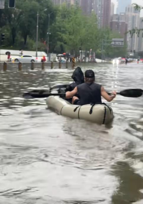 7月3日,成都遭遇暴雨,多条道路出现积水。一位成都市民在积水中划船的视频在网络上迅速走红,有网友戏称这是成都人特有的松弛感。