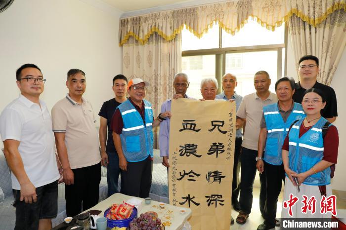 当永定区洪山镇田梓村林佛养老人颤抖着握住兄长黄宝洲的手时,两位耄耋老人相拥而泣,在场的亲属、义工和村民共同见证了这一感人时刻。