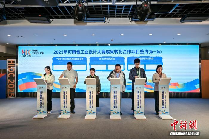 图为2025年河南省工业设计大赛成果转化合作项目签约现场。大赛组委会供图