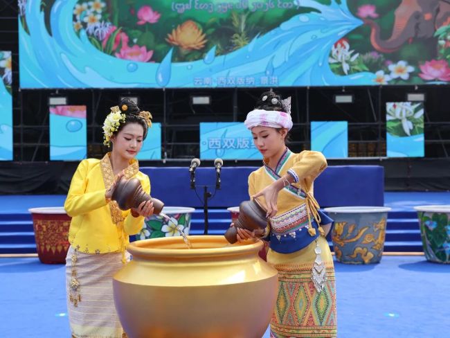 州委副书记、州长刀文,州委副书记、景洪市委书记赵刚等党政领导参加了泼水活动。上午9点,庄严的取水仪式正式开始,取水少女用银钵挑取澜沧江水注入金钵。仪式结束后,经过祈福的圣水由众人护送前往泼水广场。上午11点,寓意国泰民安、风调雨顺、五谷丰登的“吉祥水”抵达泼水广场。
