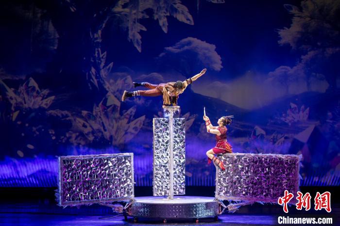 图为演员们在表演高难度的杂技。谢江波 摄