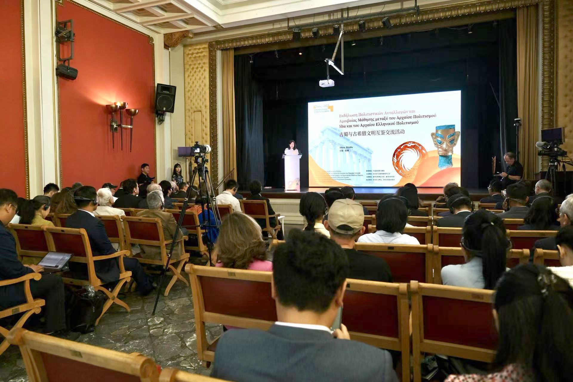 人民网罗马5月14日电 (记者谢亚宏)古蜀与古希腊文明互鉴交流活动13日在在希腊雅典尼亚斯米尼市政博物馆举行,两大文明在此展开跨越时空的对话。本次活动由中国驻希腊大使馆指导,四川省人民政府新闻办公室主办,四川省文物局、四川日报报业集团承办,四川文化传播有限公司、中希时报执行,并得到希腊文化部、新华社欧洲总分社、新华社研究院、希中友协等机构的支持。
