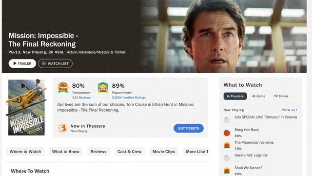 《碟中谍8》于5月23日在北美地区上映,片长2小时49分钟,烂番茄新鲜度为80%,观众评分为89%。派拉蒙官方发布了该电影的片段,展示了阿汤哥在水下的特技表演。