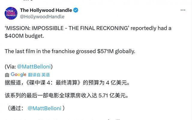 据了解,《碟中谍8》的预算高达4亿美元,全球首周末票房达到1.9亿美元,成为该系列29年来最强开画。该片在中国内地定档5月30日上映。