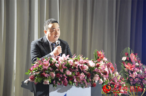 南中经贸协会秘书长、人民网南非公司总经理韦冬泽在推介会上发言。人民网 刘畅摄